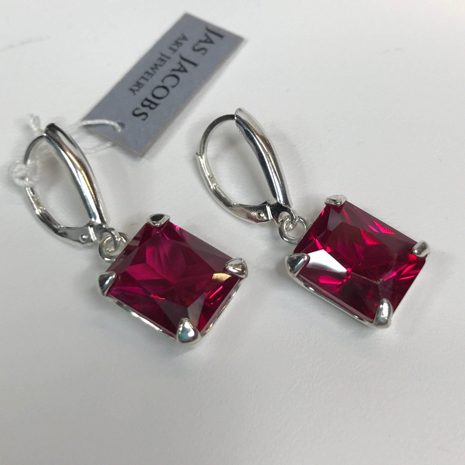 GORGEOUS 8ctw Emerald Cut Ruby Earrings in Sterling Silver