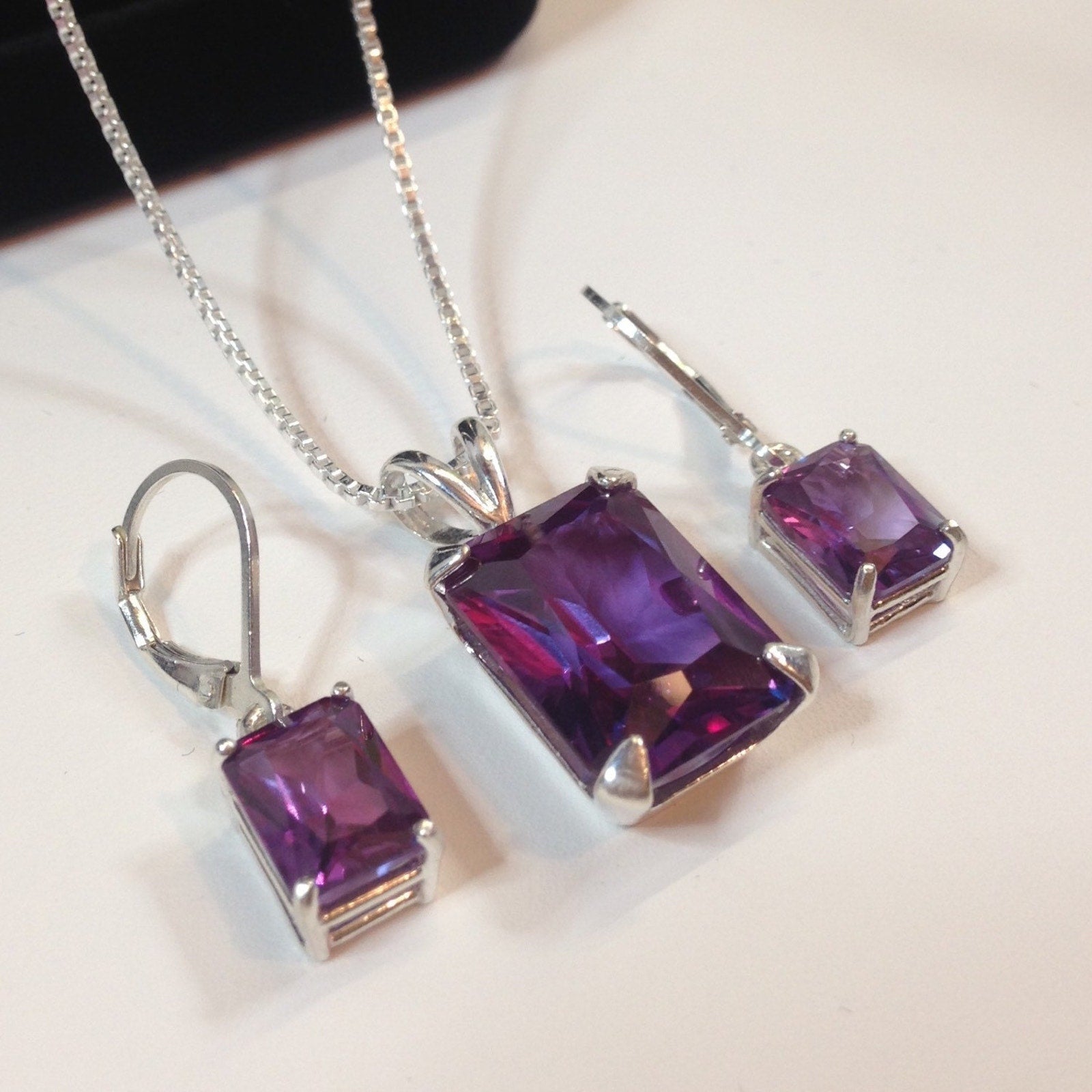 Gorgeous Emerald Cut Alexandrite Necklace & Earrings Set Color Change June Birthstone Holiday Jewelry Gift Alexandrite Jewelry Set
